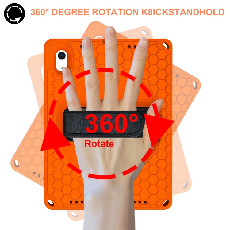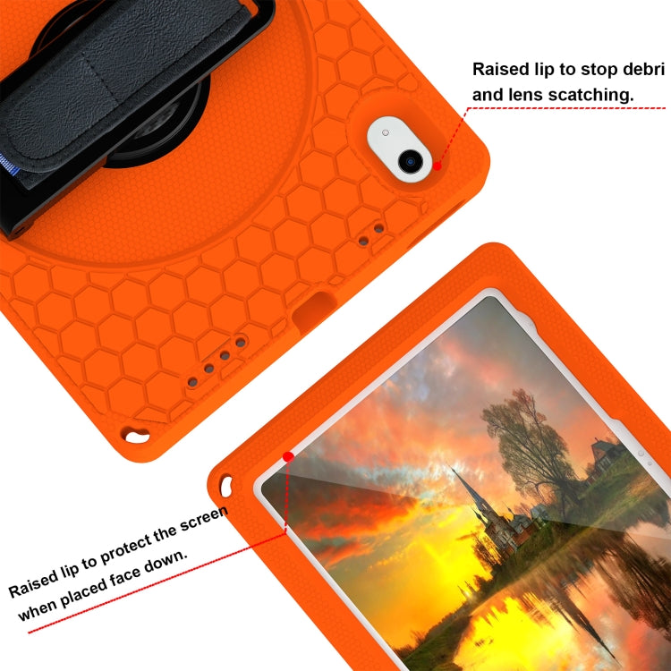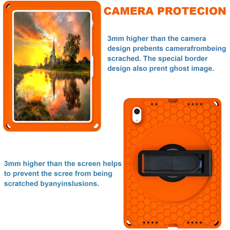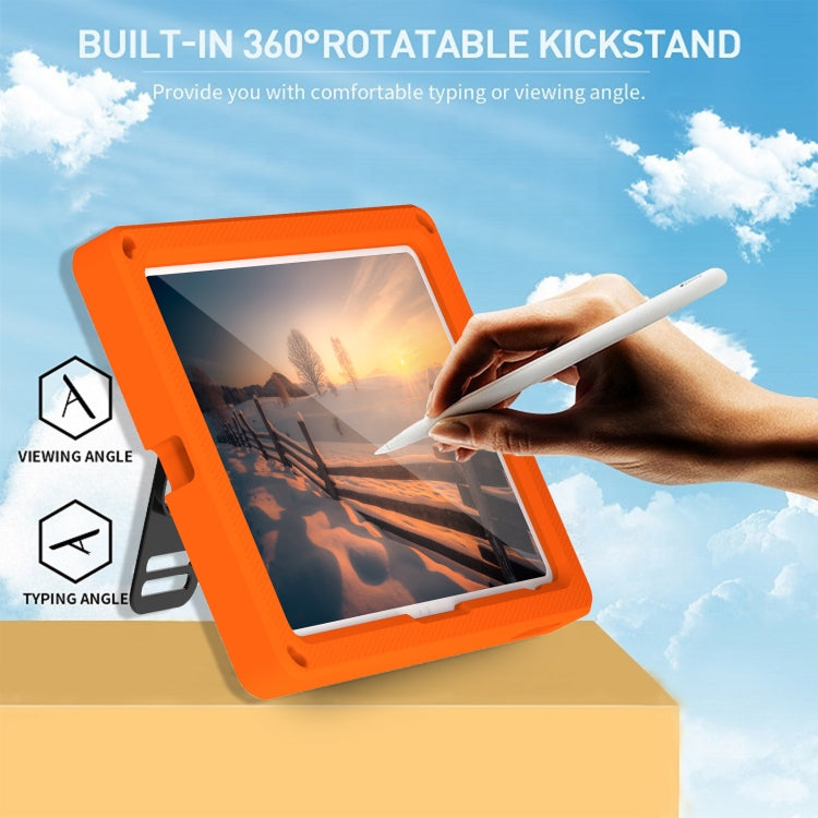 For iPad 2025 / 2022 360 Rotation Stand EVA Hard PC Tablet Case with Strap(Orange+Black)