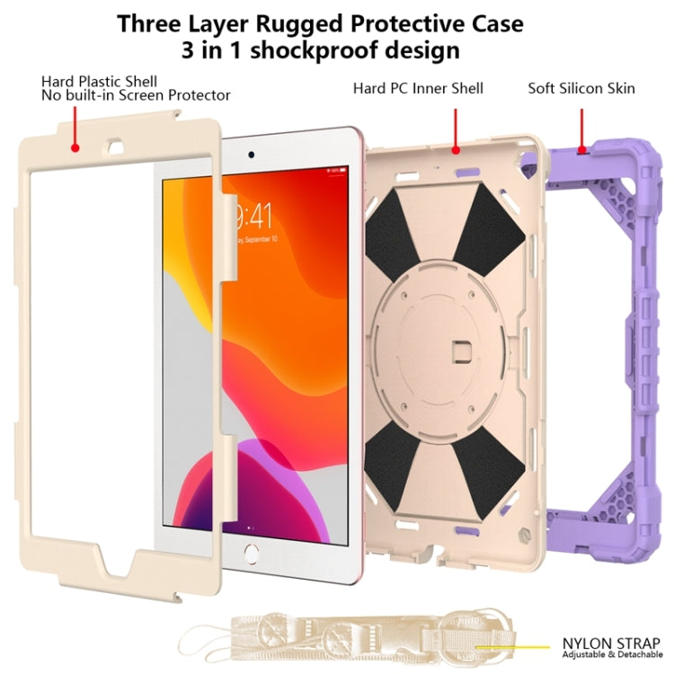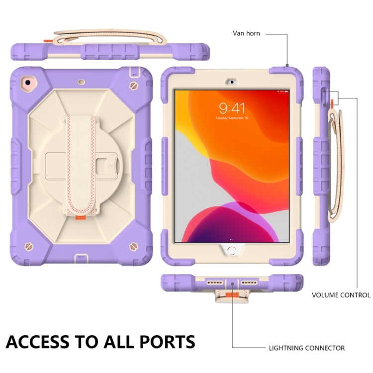 For iPad 10.2 2021 / 2020 / 2019 Contrast Color Robot Shockproof Silicon + PC Protective Case with Holder & Shoulder Strap(Purple Beige)