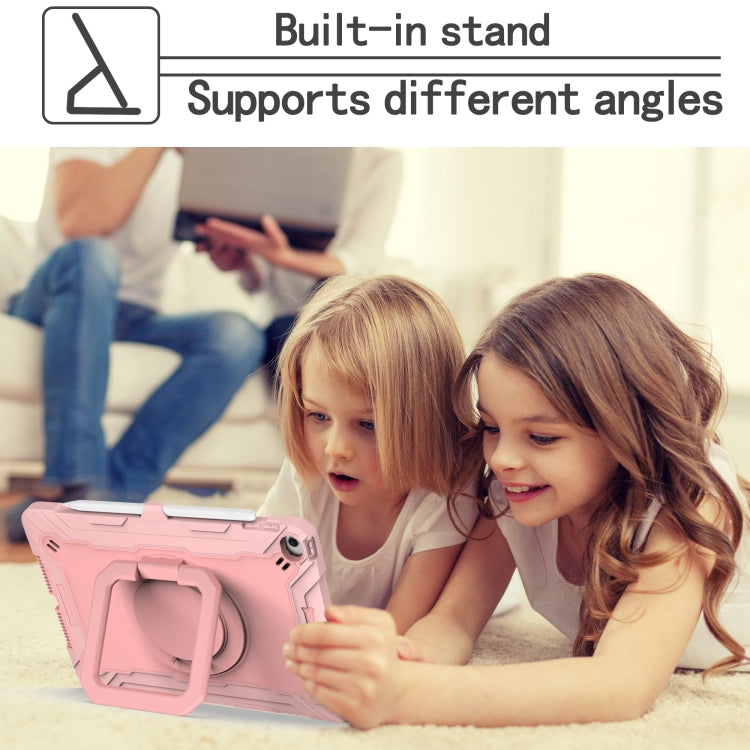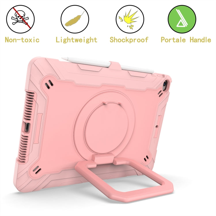 For iPad 10.2 2021 / 2020 / 2019 Contrast Color Shockproof Robot Silicone + PC Case with Wristband Holder(Rose Gold)