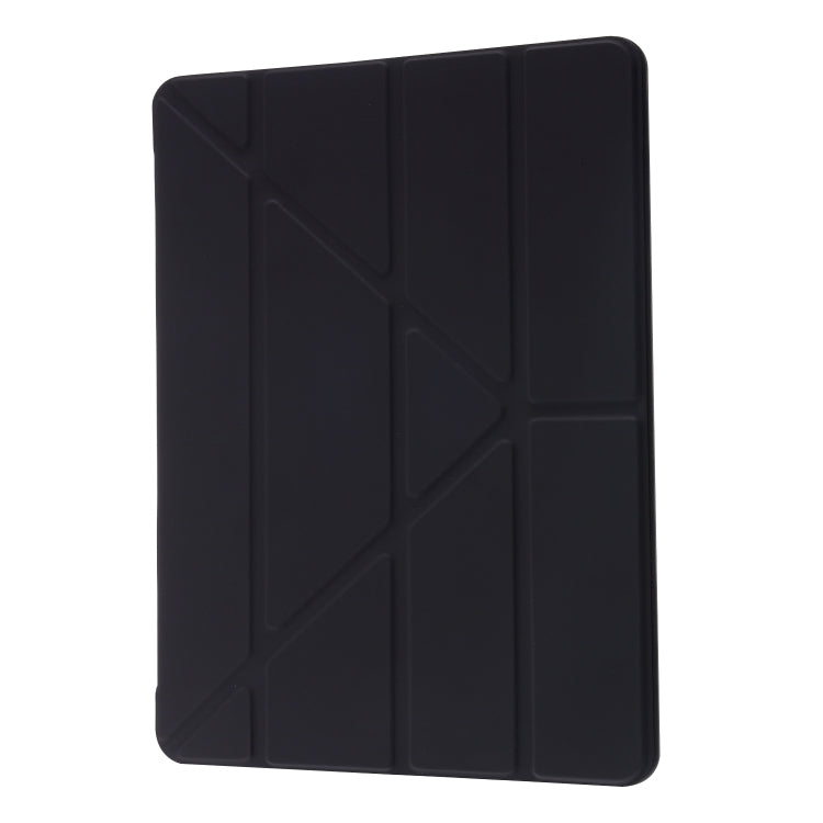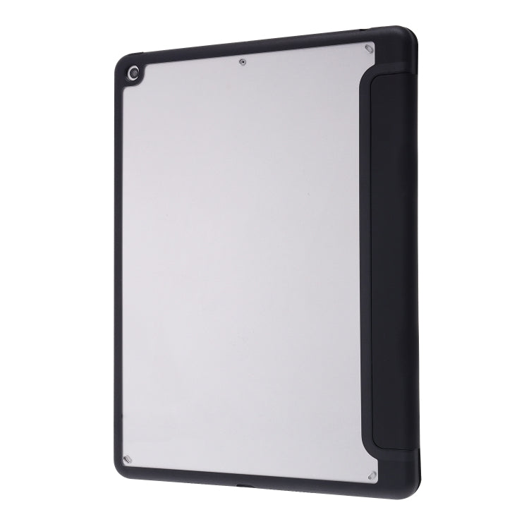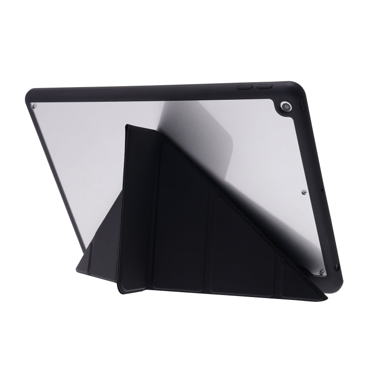 For iPad 10.2 2021 / 2020 / 2019 Deformation Transparent Acrylic Horizontal Flip PU Leather Case with Multi-folding Holder & Sleep / Wake-up Function & Pen Slot(Black)