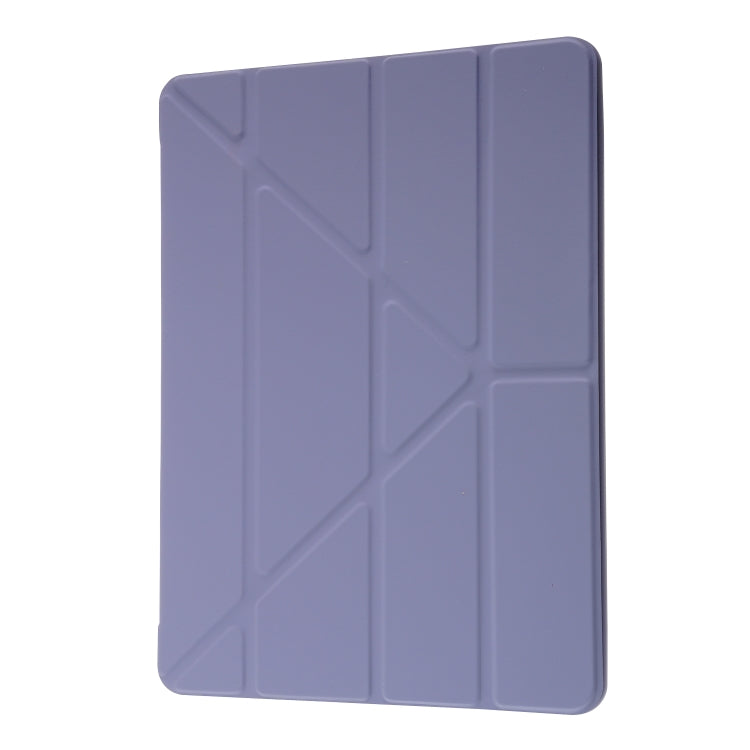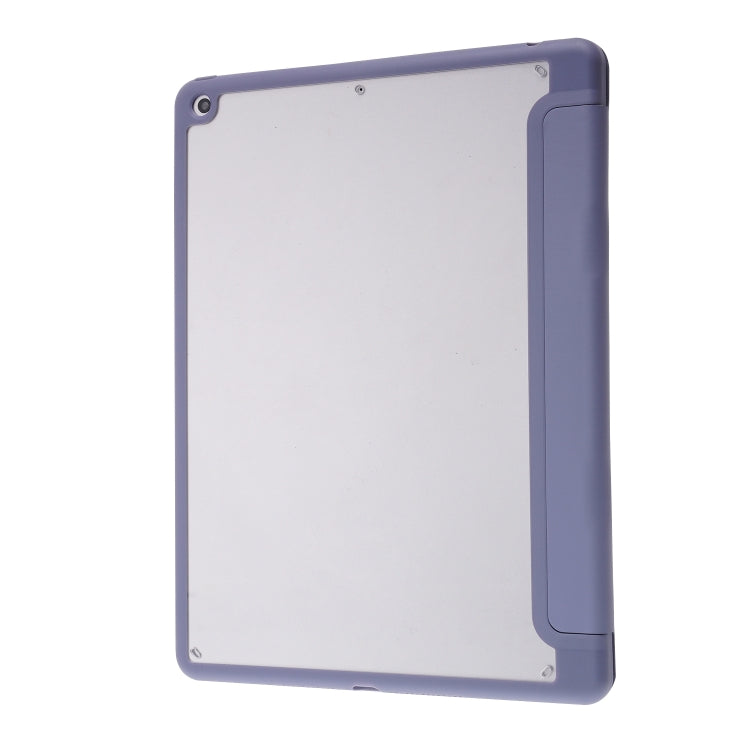 For iPad 10.2 2021 / 2020 / 2019 Deformation Transparent Acrylic Horizontal Flip PU Leather Case with Multi-folding Holder & Sleep / Wake-up Function & Pen Slot(Lavender Grey)