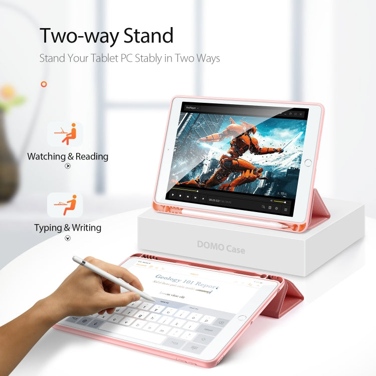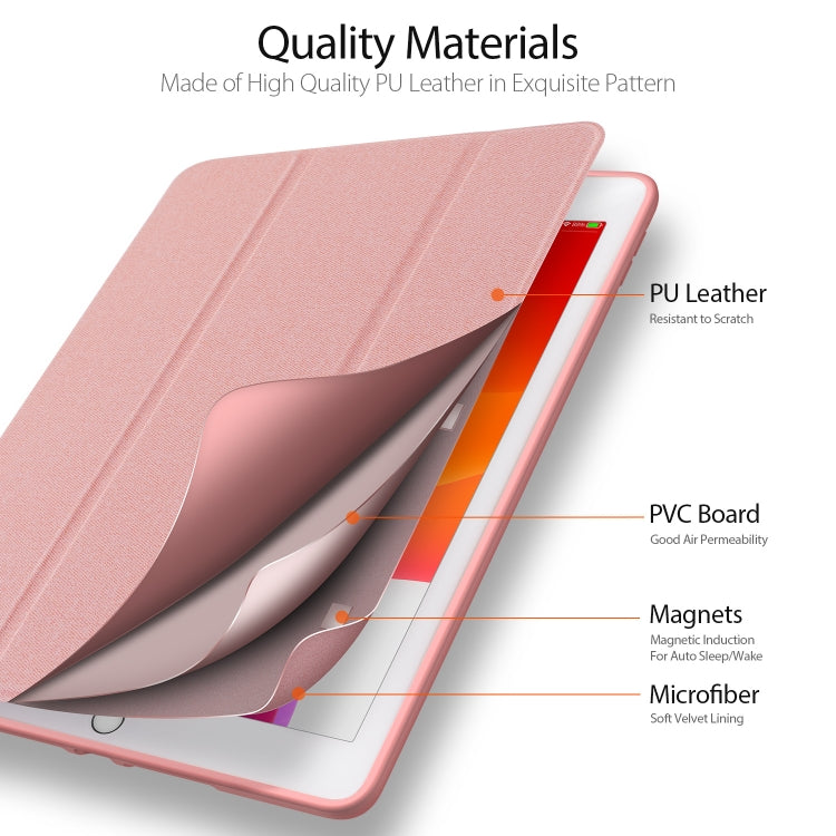 For iPad 10.2 DUX DUCIS Domo Series Horizontal Flip Magnetic PU Leather Case with Three-folding Holder & Pen Slot & Sleep / Wake-up Function (Pink)