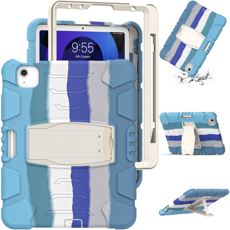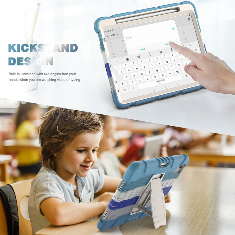 3-Layer PC + Silicone Shockproof Tablet Case with Holder For iPad Air 2020 / 2022 10.9 / Pro 11 2022 / 2021 / 2020 / 2018Colorful Blue)