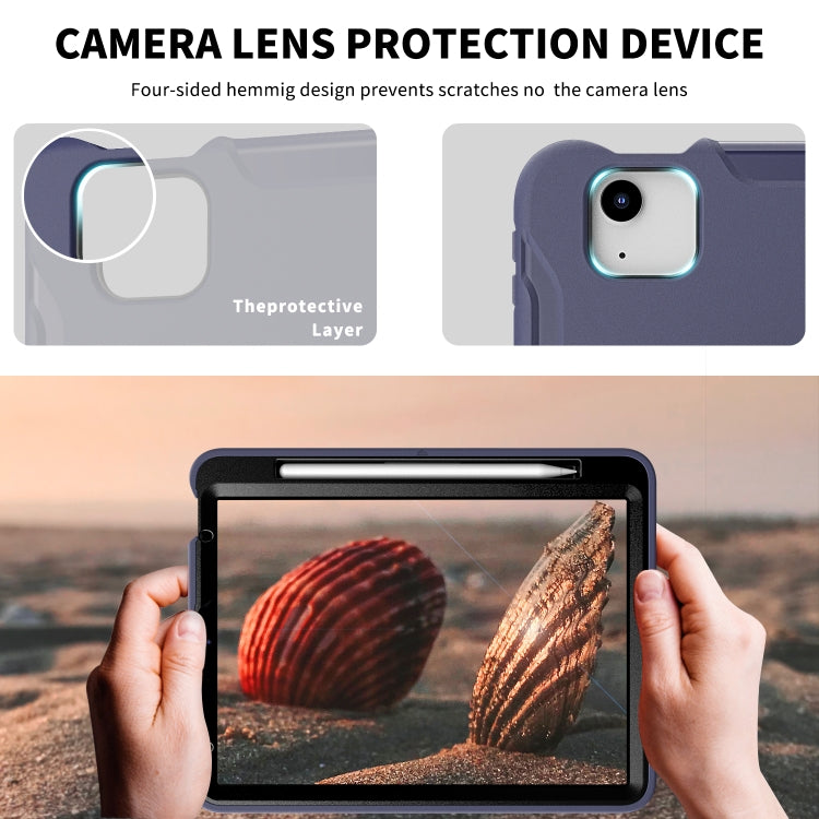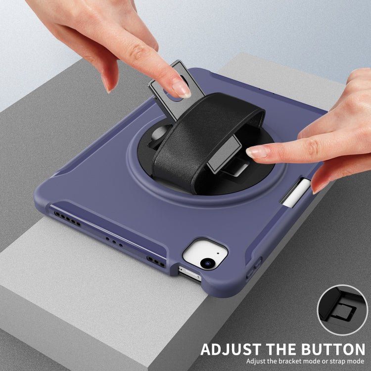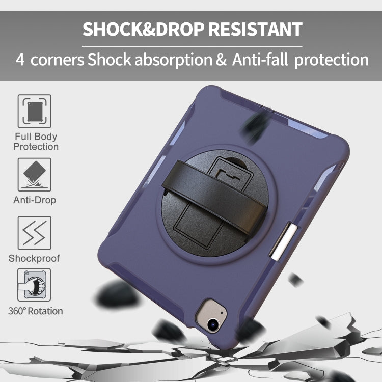For iPad Air 2022 / 2020 10.9 360 Degree Rotation PC + TPU Protective Case with Holder & Hand-strap & Pen Slot(Blue)