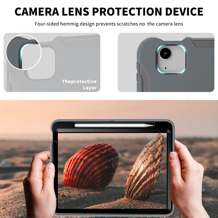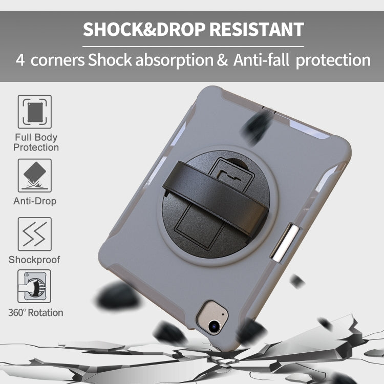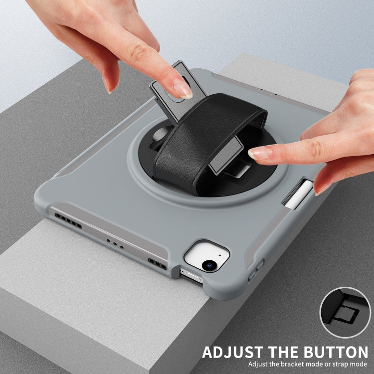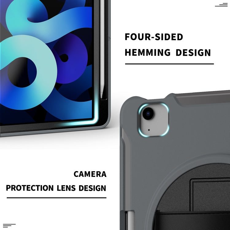 For iPad Air 2022 / 2020 10.9 360 Degree Rotation PC + TPU Protective Case with Holder & Hand-strap & Pen Slot(Grey)