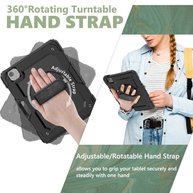 Shockproof Colorful Silicone + PC Protective Case with Holder & Shoulder Strap & Hand Strap & Pen Slot For iPad Air 2022 / 2020 10.9 (Black)
