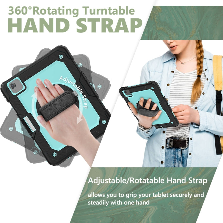 Shockproof Colorful Silicone + PC Protective Case with Holder & Shoulder Strap & Hand Strap & Pen Slot For iPad Air 2022 / 2020 10.9 (Black Light Blue)