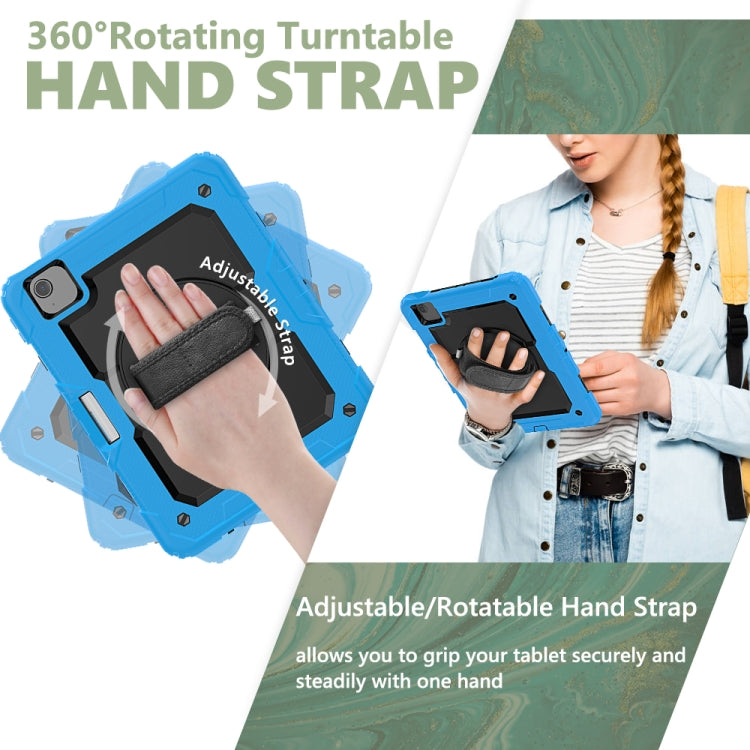 Shockproof Colorful Silicone + PC Protective Case with Holder & Shoulder Strap & Hand Strap & Pen Slot For iPad Air 2022 / 2020 10.9 (Light Blue)
