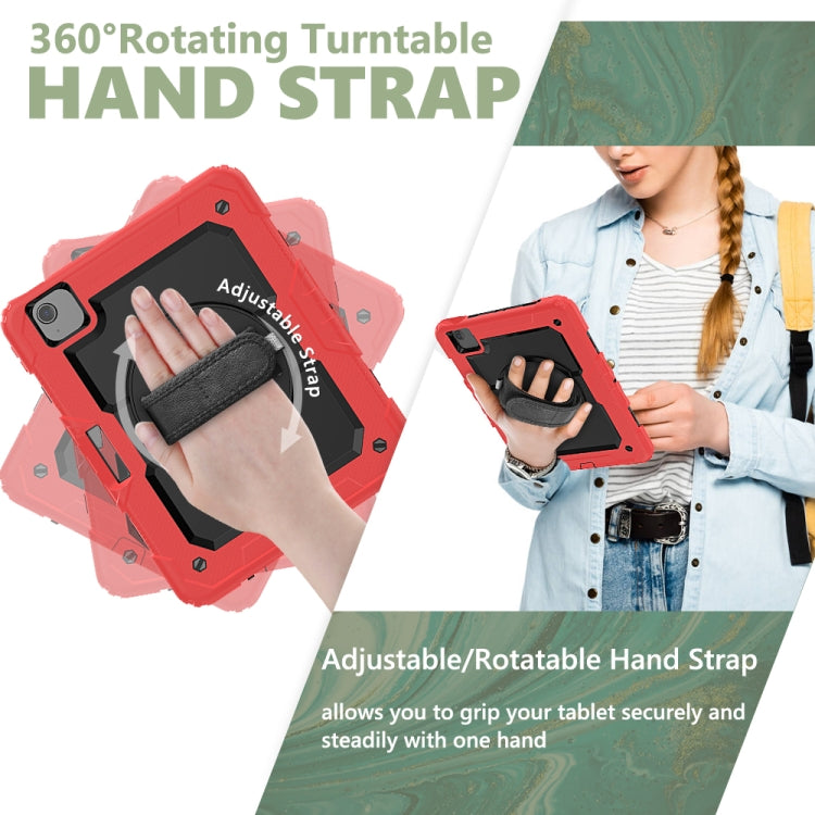 Shockproof Colorful Silicone + PC Protective Case with Holder & Shoulder Strap & Hand Strap & Pen Slot For iPad Air 2022 / 2020 10.9 (Red)