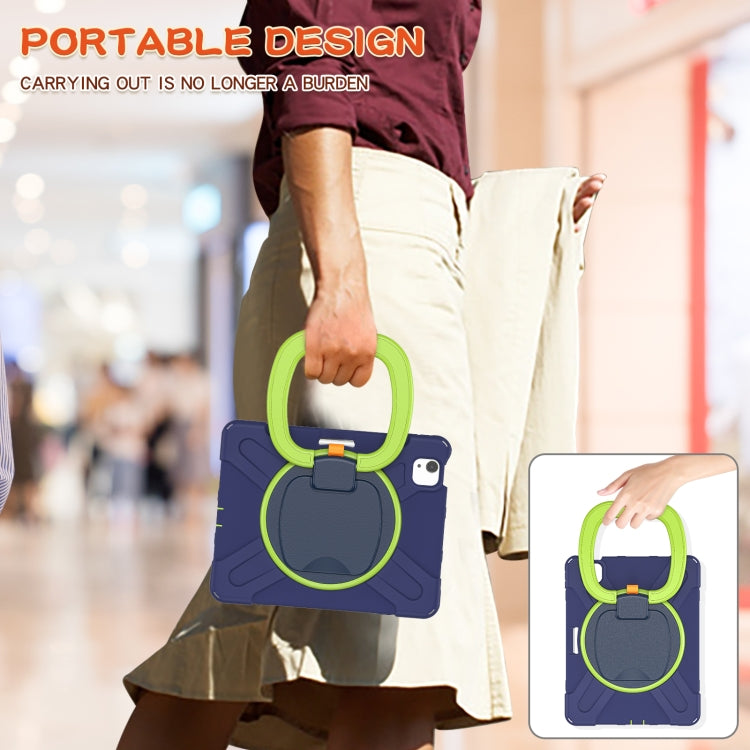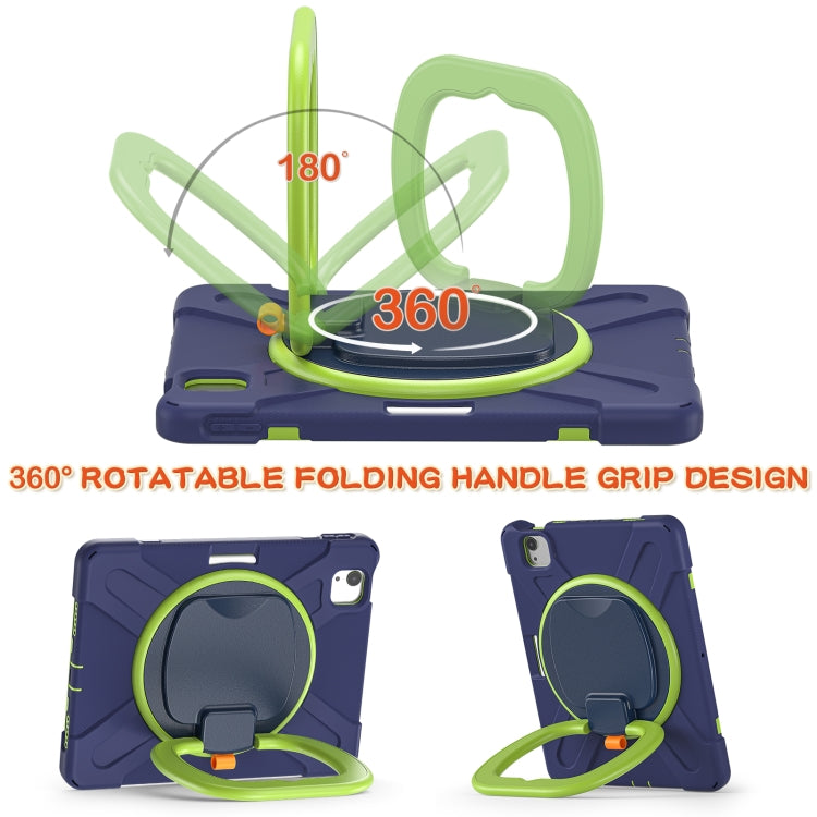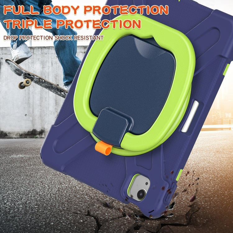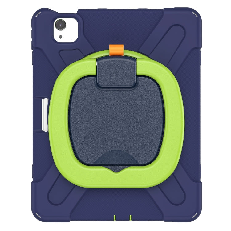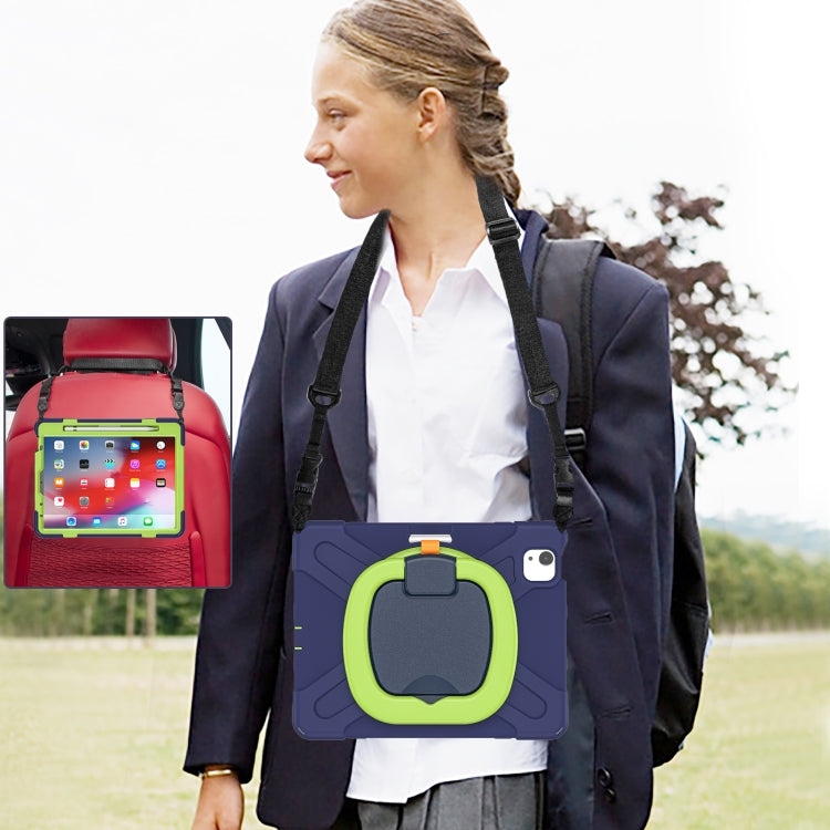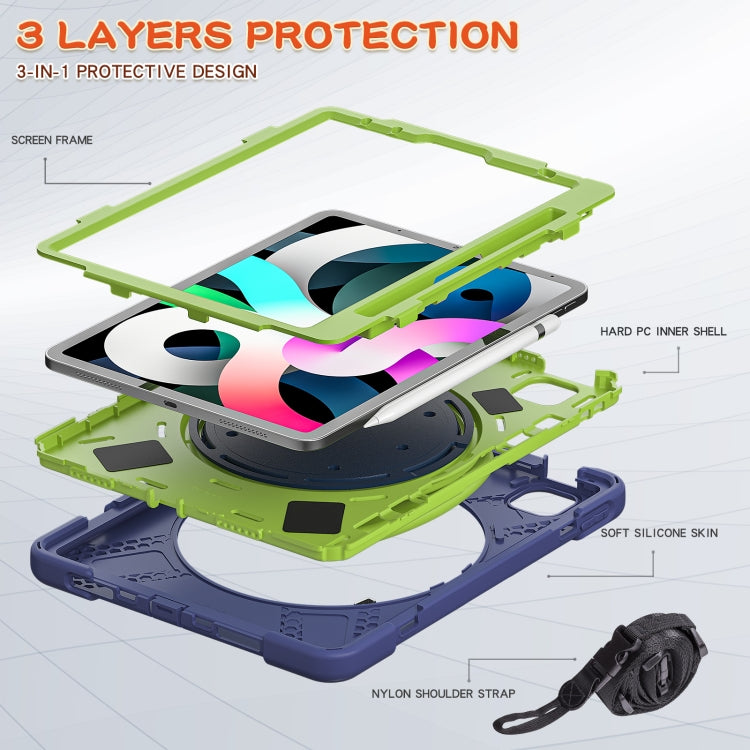 Silicone + PC Protective Case with Holder & Shoulder Strap For iPad Air 2022 / 2020 10.9(Navy Blue+Yellow Green)