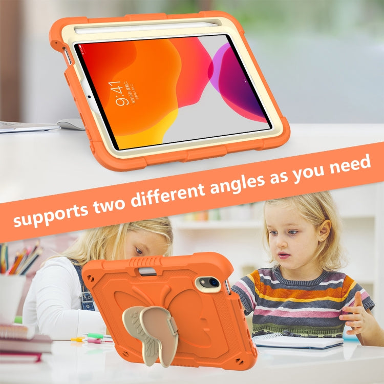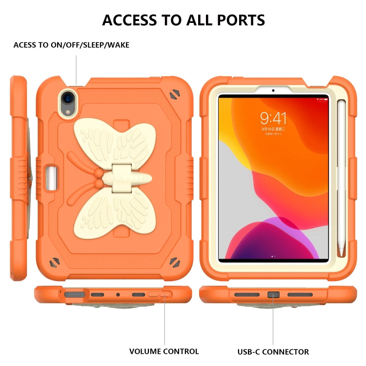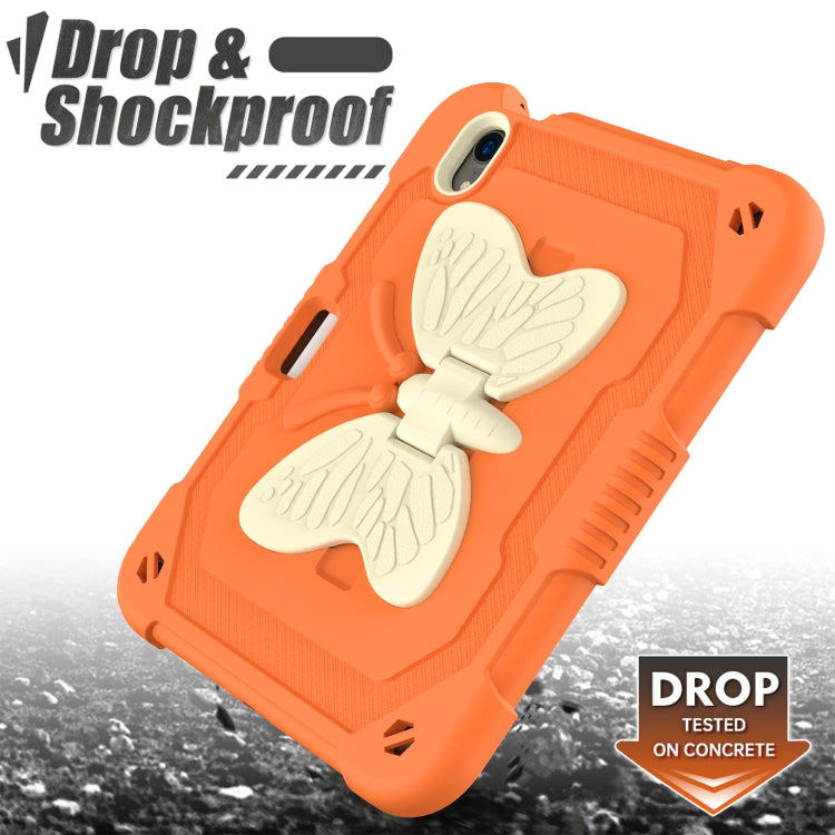 For iPad mini 6 / mini 2024 Beige PC + Silicone Anti-drop Protective Tablet Case with Butterfly Shape Holder & Pen Slot(Beige + Kumquat)