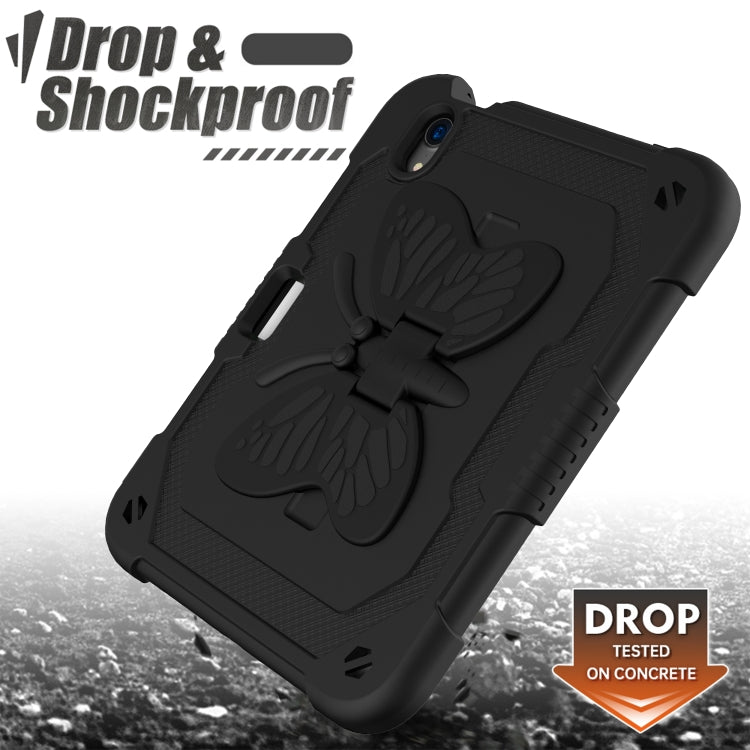 For iPad mini 6 / mini 2024 Pure Color PC + Silicone Anti-drop Protective Tablet Case with Butterfly Shape Holder & Pen Slot(Black)