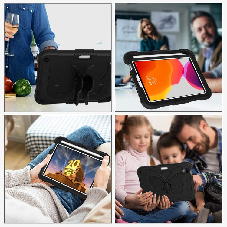 For iPad mini 6 Pure Color PC + Silicone Anti-drop Protective Tablet Case with Butterfly Shape Holder & Pen Slot(Black)
