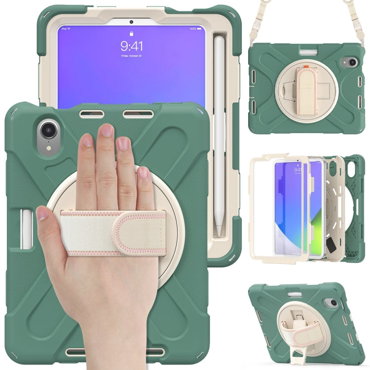 For iPad mini 6 Silicone + PC Protective Tablet Case with Holder & Shoulder Strap(Emerald Green)