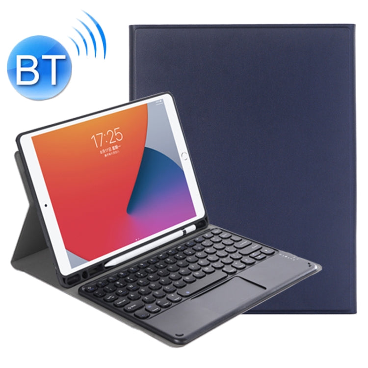 YA11B-A 2021 Detachable Lambskin Texture Round Keycap Bluetooth Keyboard Leather Tablet Case with Touch Control & Pen Slot & Stand For iPad Pro 11 2021 / Air4 / Air5 / Pro 11(Dark Blue)