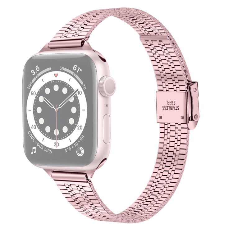 14mm Seven-beads Double Safety Buckle Slim Steel Watch Band For Apple Watch Series 8&7 41mm / SE 2&6&SE&5&4 40mm / 3&2&1 38mm(Rose Pink)