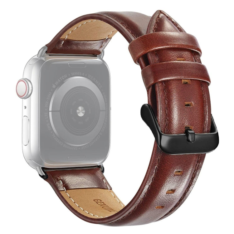Black Buckle Leather Watch Band For Apple Watch Series 10 42mm / 9&8&7 41mm / SE 3&SE 2&6&SE&5&4 40mm / 3&2&1 38mm(Dark Brown)