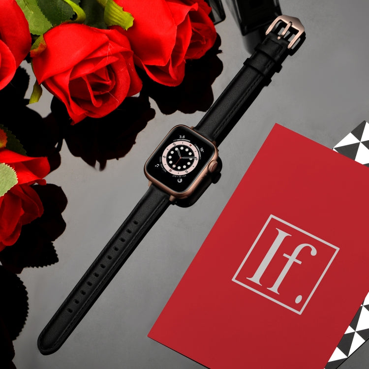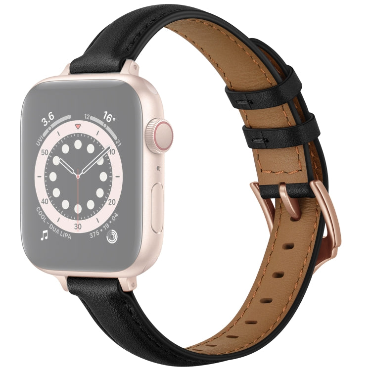 Business Style Leather Watch Band For Apple Watch Series 9&8&7 41mm / SE 3&SE 2&6&SE&5&4 40mm / 3&2&1 38mm(Black Rose Gold Buckle)
