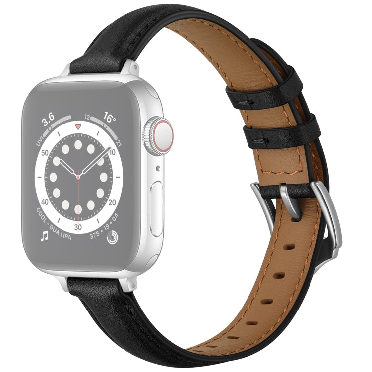 Business Style Leather Watch Band For Apple Watch Series 8&7 41mm / SE 2&6&SE&5&4 40mm / 3&2&1 38mm(Black Silver Buckle)