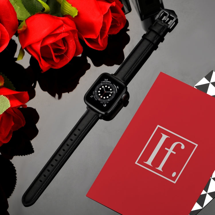 Business Style Leather Watch Band For Apple Watch Ultra 49mm&Watch Ultra 2 49mm / Series 9&8&7 45mm / SE 3&SE 2&6&SE&5&4 44mm / 3&2&1 42mm(Black Black Buckle)
