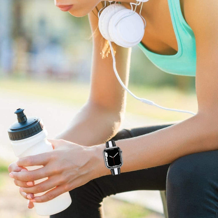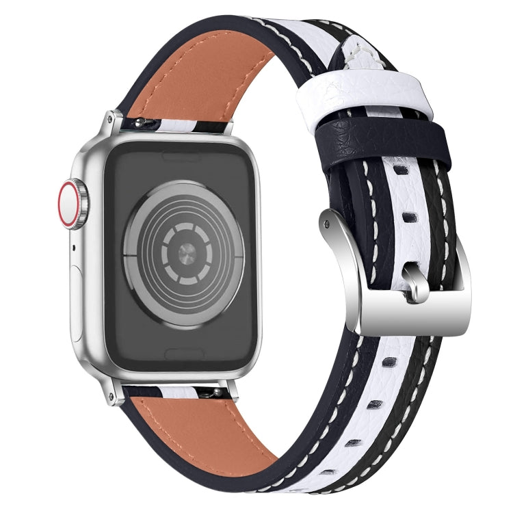Color Matching Leather Watch Band For Apple Watch Ultra 49mm&Watch Ultra 2 49mm / Series 9&8&7 45mm / SE 3&SE 2&6&SE&5&4 44mm / 3&2&1 42mm(Black White)