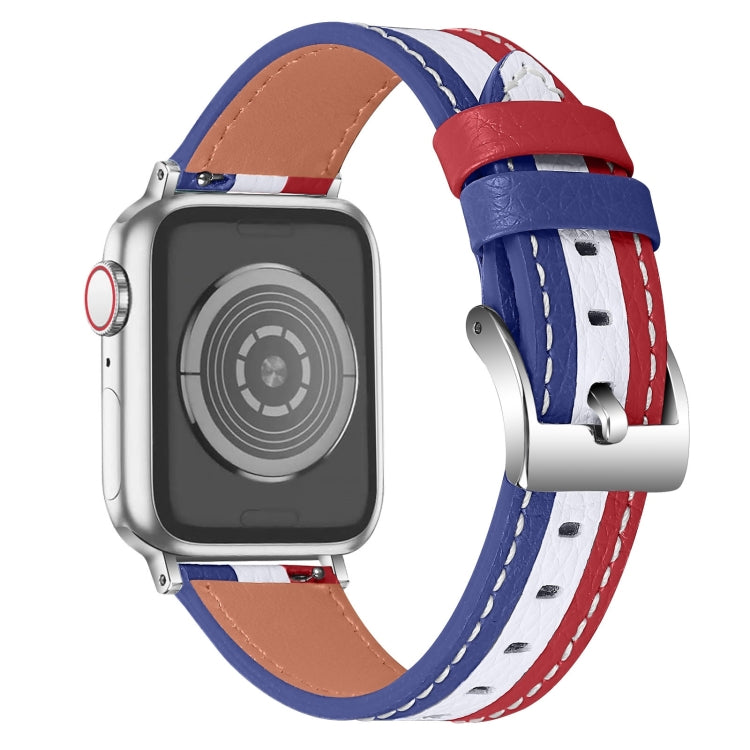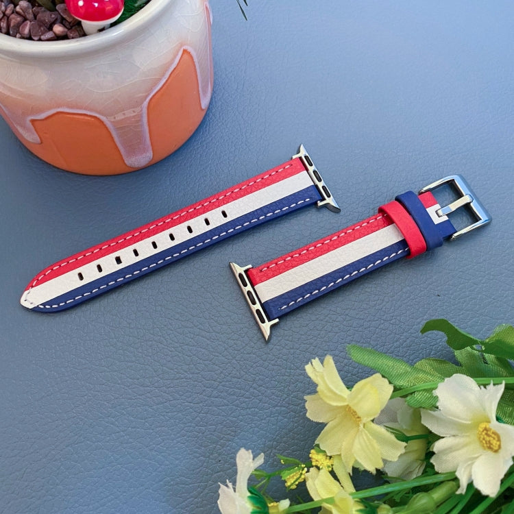 Color Matching Leather Watch Band For Apple Watch Ultra 49mm&Watch Ultra 2 49mm / Series 9&8&7 45mm / SE 3&SE 2&6&SE&5&4 44mm / 3&2&1 42mm(Blue White Red)