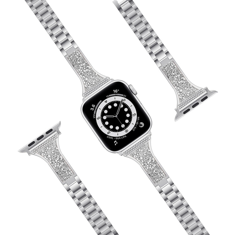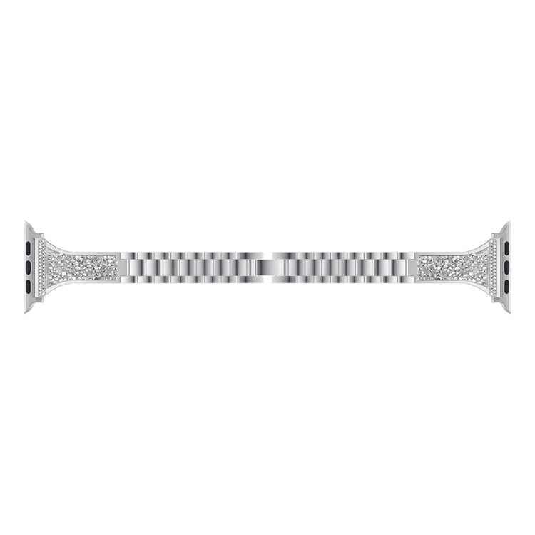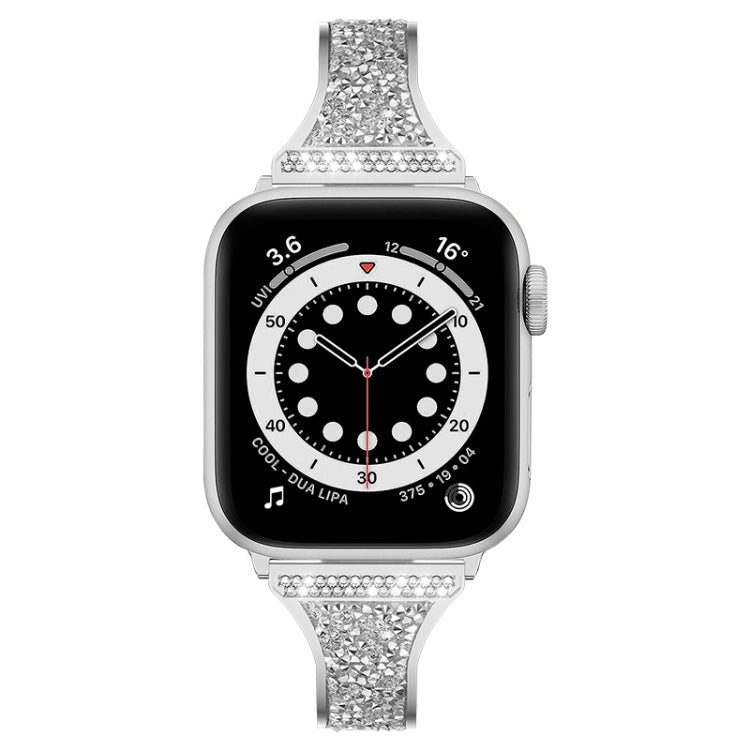 Diamond Encrusted Leather Strap Watch Band For Apple Watch Series 9&8&7 41mm / SE 3&SE 2&6&SE&5&4 40mm / 3&2&1 38mm(Silver)
