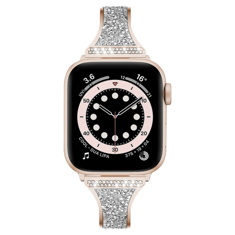 Diamond Encrusted Leather Strap Watch Band For Apple Watch Ultra 49mm&Watch Ultra 2 49mm / Series 9&8&7 45mm / SE 3&SE 2&6&SE&5&4 44mm / 3&2&1 42mm(Rose Gold)