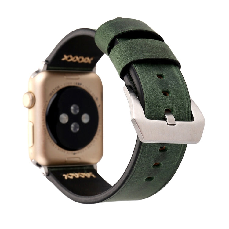For Apple Watch 45mm 44mm 42mm Retro XX Line Pattern Genuine Leather Wrist Watch Band(Green)