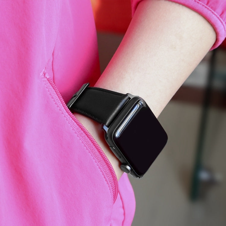 For Apple Watch Ultra 49mm&Watch Ultra 2 49mm / Series 9&8&7 45mm / SE 3&SE 2&6&SE&5&4 44mm / 3&2&1 42mm Oil Wax Genuine Leather Strap Watch Band(Black)