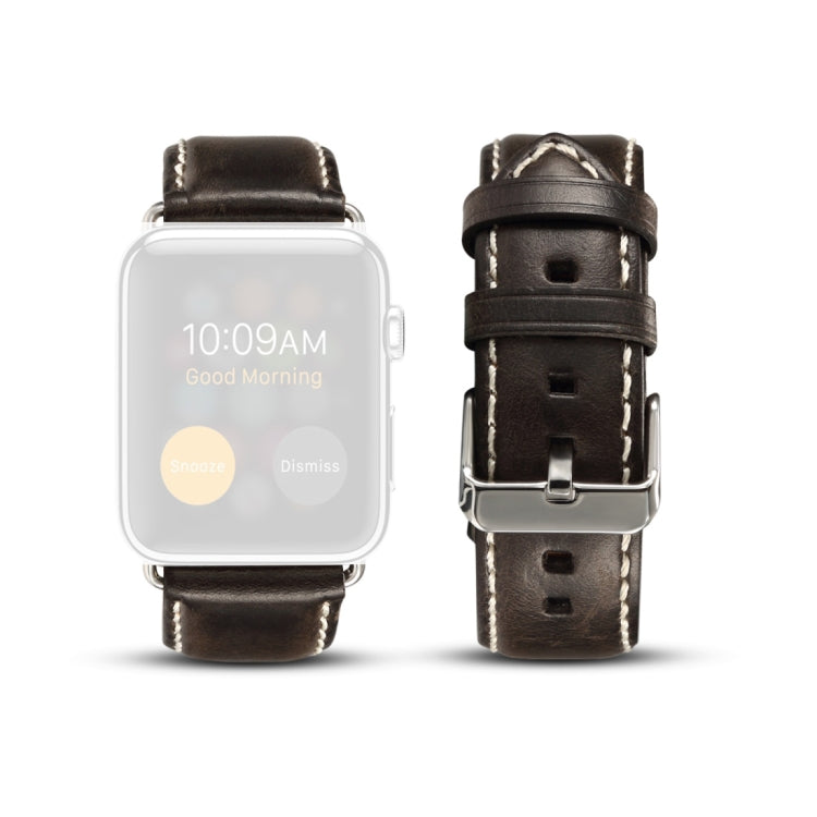 For Apple Watch Series 7 45mm / 6 & SE & 5 & 4 44mm / 3 & 2 & 1 42mm Oil Wax Retro Cowhide Strap Watch Band(Black)