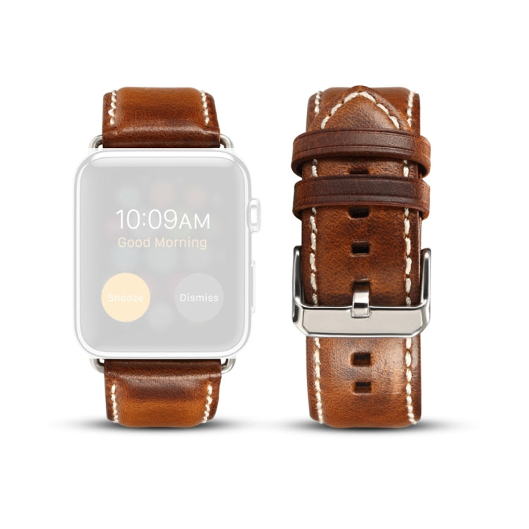 For Apple Watch Series 7 45mm / 6 & SE & 5 & 4 44mm / 3 & 2 & 1 42mm Oil Wax Retro Cowhide Strap Watch Band(Brown)