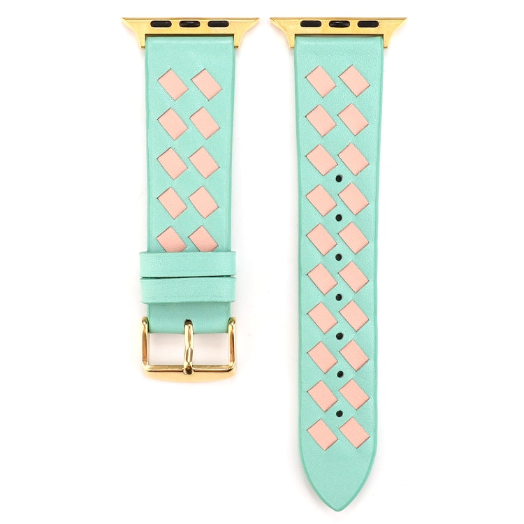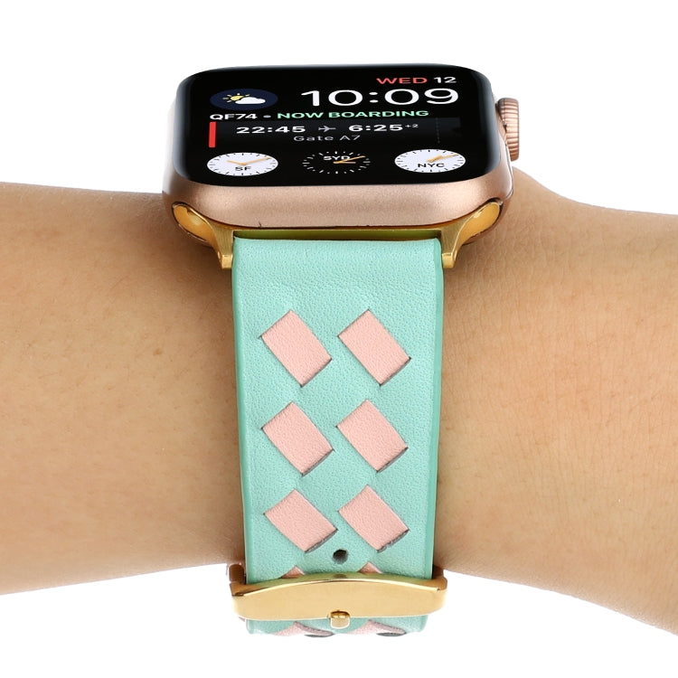 For Apple Watch Ultra 49mm&Watch Ultra 2 49mm / Series 9&8&7 45mm / SE 3&SE 2&6&SE&5&4 44mm / 3&2&1 42mm Woven Pattern Genuine Leather Strap(Green Pink)