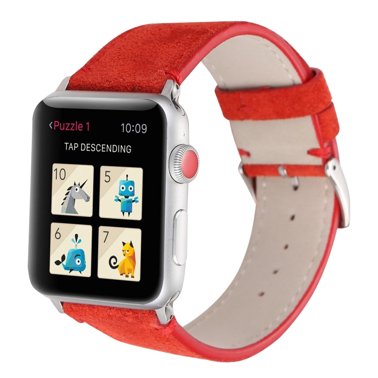 Frosted Genuine Leather Watch Band For Apple Watch Series 7 41mm / 6 & SE & 5 & 4 40mm / 3 & 2 & 1 38mm(Red)