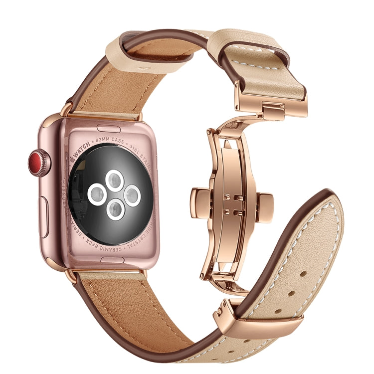 Genuine Leather + Butterfly Rose Gold Buckle Watch Band For Apple Watch Series 9&8&7 41mm / SE 3&SE 2&6&SE&5&4 40mm / 3&2&1 38mm(Apricot)