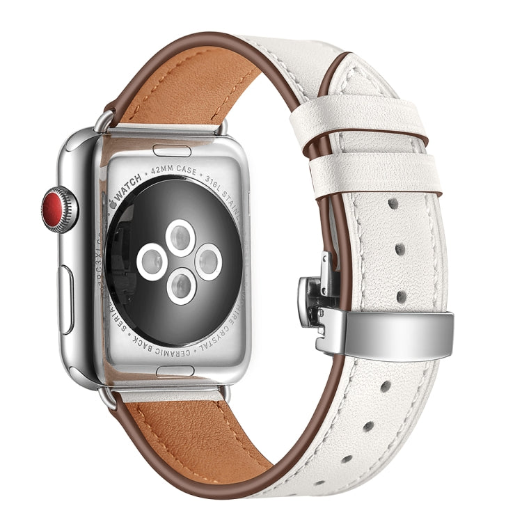 Genuine Leather + Butterfly Silver Buckle Watch Band For Apple Watch Series 7 45mm / 6 & SE & 5 & 4 44mm / 3 & 2 & 1 42mm(White)