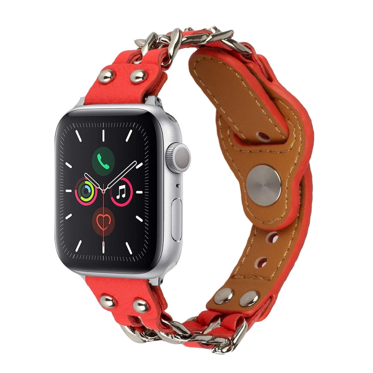 Genuine Leather Male Style Watch Band For Apple Watch Series 8&7 41mm / SE 2&6&SE&5&4 40mm / 3&2&1 38mm(Red)