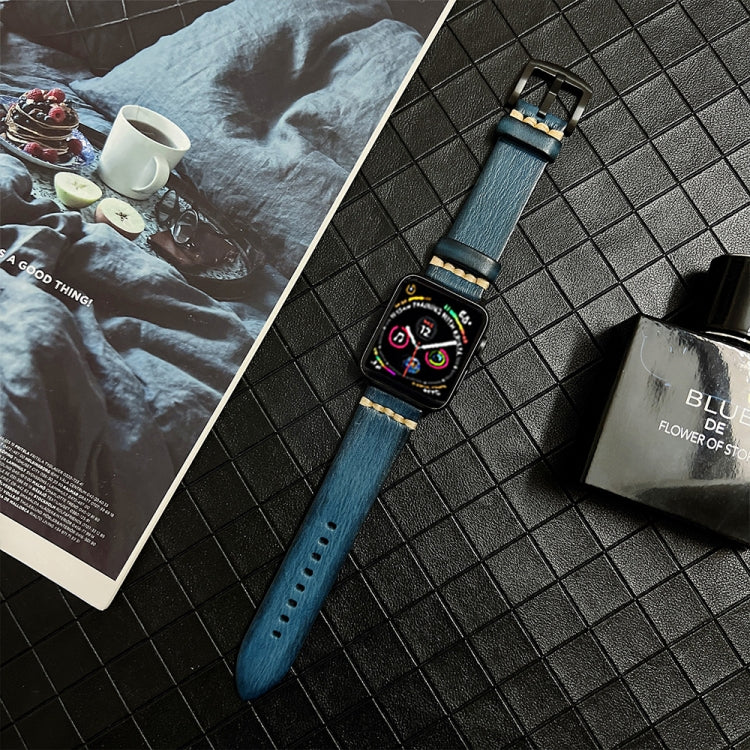 Genuine Leather Watch Band For Apple Watch Ultra 49mm&Watch Ultra 2 49mm / Series 9&8&7 45mm / SE 3&SE 2&6&SE&5&4 44mm / 3&2&1 42mm(Blue)