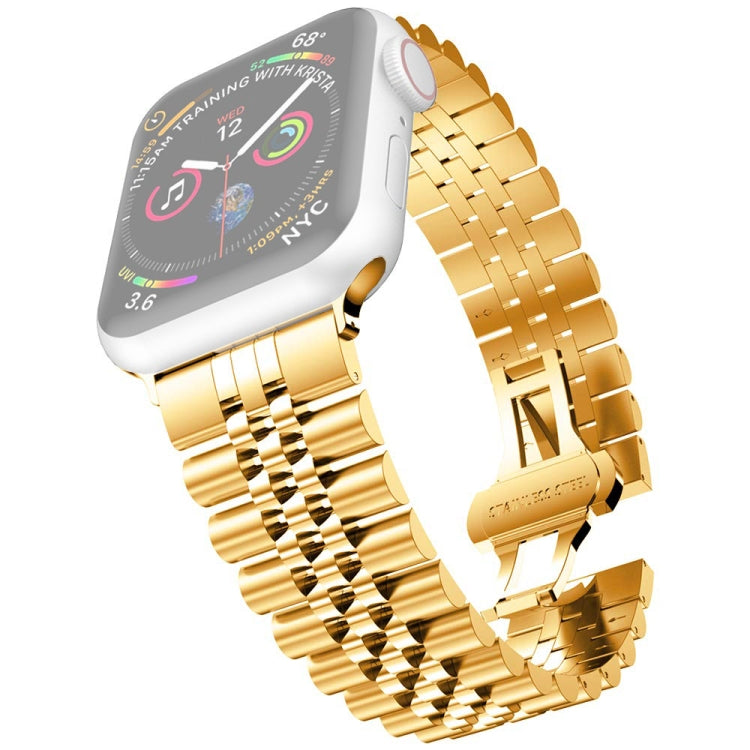 Metal Five Baht Replacement Steel Watch Band For Apple Watch Series 8&7 41mm / SE 2&6&SE&5&4 40mm / 3&2&1 38mm(Gold)