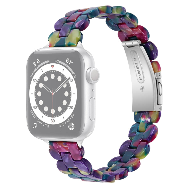Oval Resin Watch Band For Apple Watch Series 9&8&7 41mm / SE 3&SE 2&6&SE&5&4 40mm / 3&2&1 38mm(Purple Green Flower)