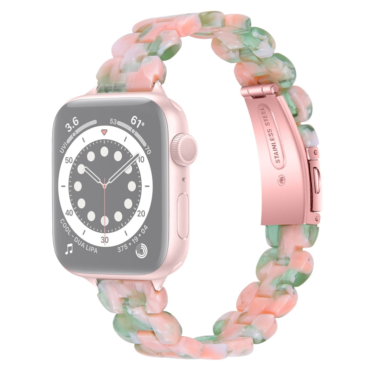 Oval Resin Watch Band For Apple Watch Ultra 49mm&Watch Ultra 2 49mm / Series 9&8&7 45mm / SE 3&SE 2&6&SE&5&4 44mm / 3&2&1 42mm(Pink Green Flower)