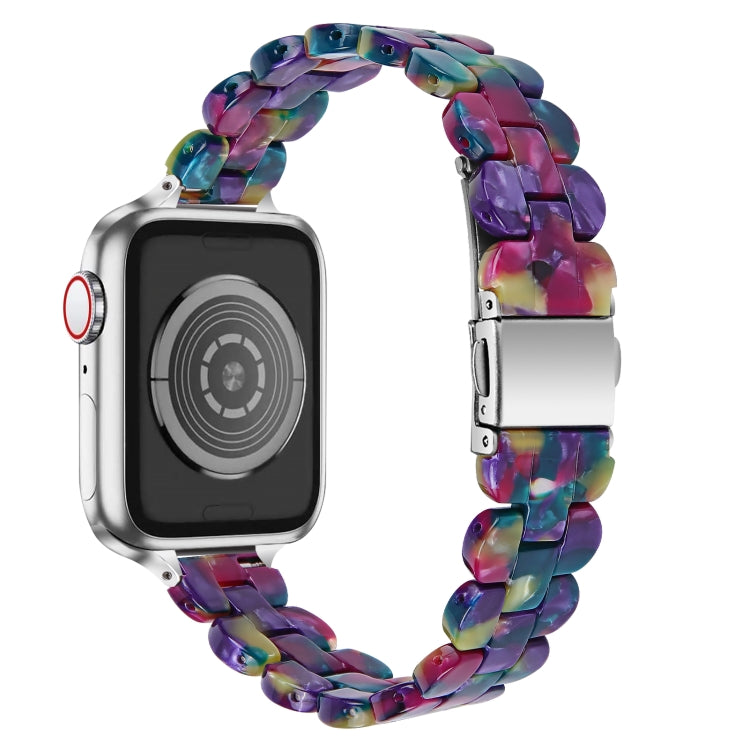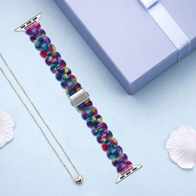 Oval Resin Watch Band For Apple Watch Ultra 49mm&Watch Ultra 2 49mm / Series 9&8&7 45mm / SE 3&SE 2&6&SE&5&4 44mm / 3&2&1 42mm(Purple Green Flower)