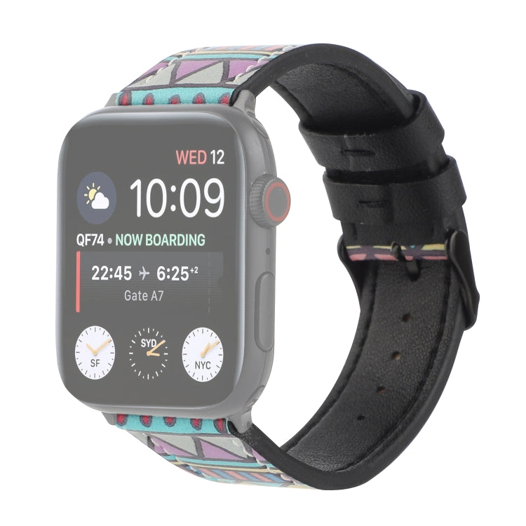 Printed Leather Watch Band For Apple Watch Series 7 41mm / 6 & SE & 5 & 4 40mm / 3 & 2 & 1 38mm(E)