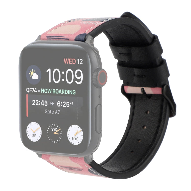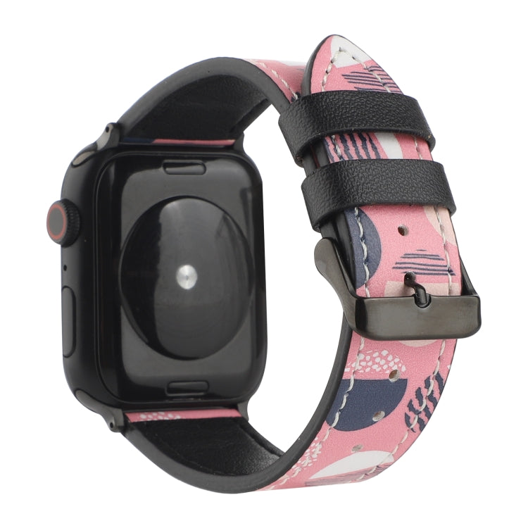 Printed Leather Watch Band For Apple Watch Series 9&8&7 41mm / SE 3&SE 2&6&SE&5&4 40mm / 3&2&1 38mm(M)