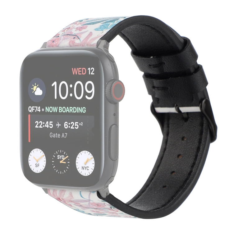 Printed Leather Watch Band For Apple Watch Series 7 45mm / 6 & SE & 5 & 4 44mm / 3 & 2 & 1 42mm(A)