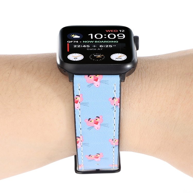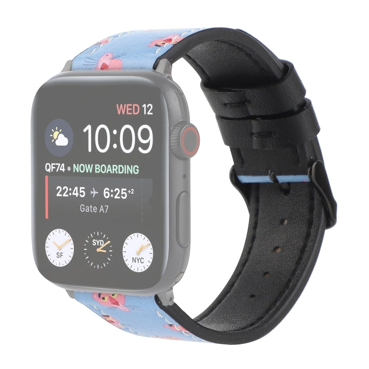 Printed Leather Watch Band For Apple Watch Series 7 45mm / 6 & SE & 5 & 4 44mm / 3 & 2 & 1 42mm(D)