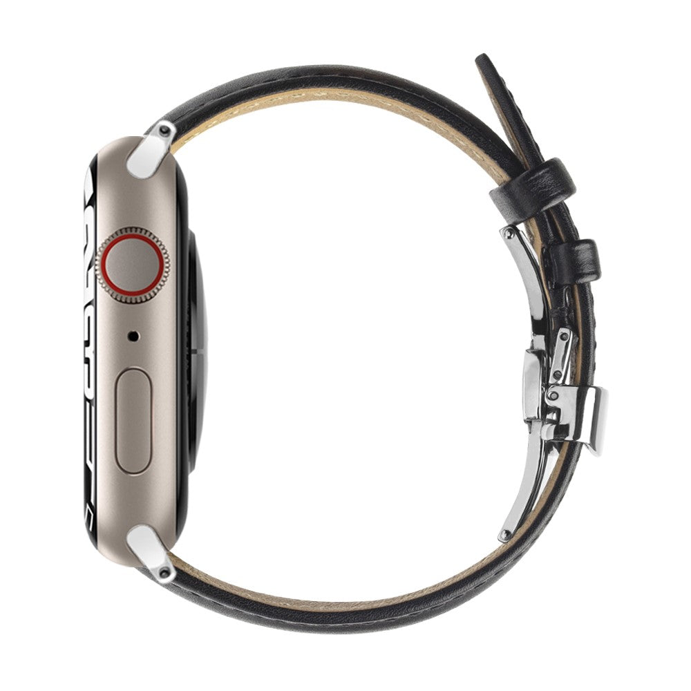 QIALINO for Apple Watch Series 7 41mm / Series 6/5/4/SE 40mm Series 3/2/1 38mm Genuine Leather Wear-resistant Solid Color Wristband Smart Watch Replacement Strap - Black
