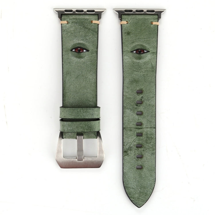 Retro Big Eyes Leather Watch Band For Apple Watch Ultra 49mm&Watch Ultra 2 49mm / Series 9&8&7 45mm / SE 3&SE 2&6&SE&5&4 44mm / 3&2&1 42mm(Green)