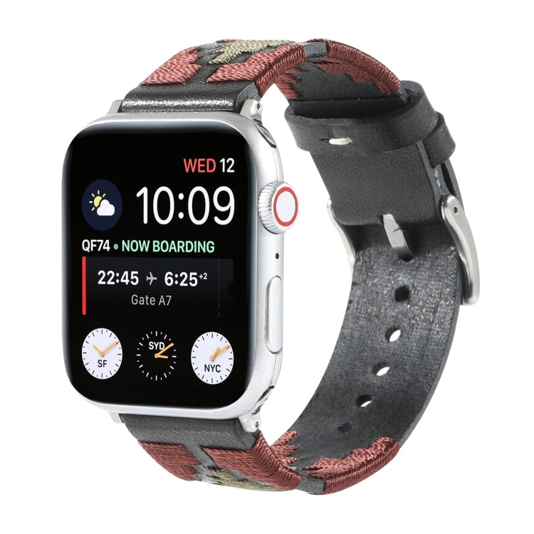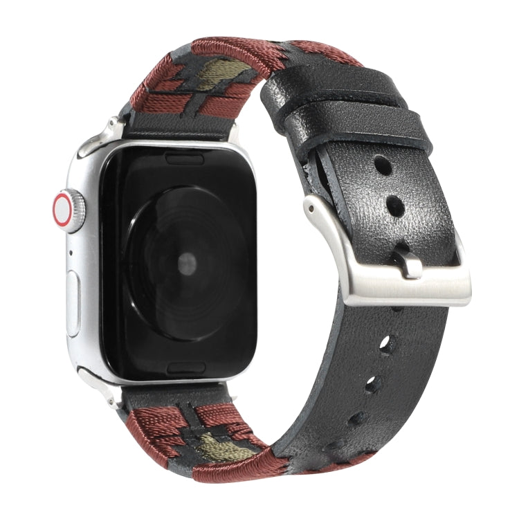 Woven Contrast Leather Watch Band For Apple Watch Series 8&7 41mm / SE 2&6&SE&5&4 40mm / 3&2&1 38mm(Black)