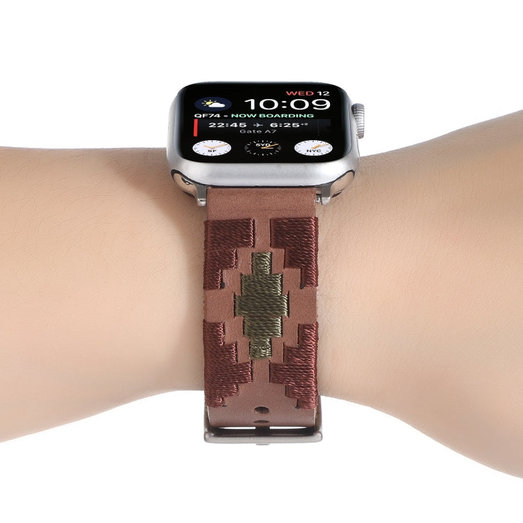Woven Contrast Leather Watch Band For Apple Watch Ultra 49mm&Watch Ultra 2 49mm / Series 9&8&7 45mm / SE 3&SE 2&6&SE&5&4 44mm / 3&2&1 42mm(Dark Brown)